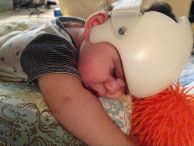 We are still on our 1st day of the new helmet, but so far Drake seems to be tolerating it better than his first helmet. Don't get me wrong, he isn't happy about it, but we are hopeful he will tolerate it. He is not supposed to sleep in his helmet tonight, so the true test will come tomorrow night.